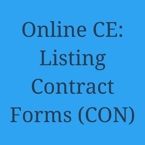 Listing Contract Forms is a 3 hour CE course. This course is good for 1 Required hour (CON) as well as 2 Elective hours.